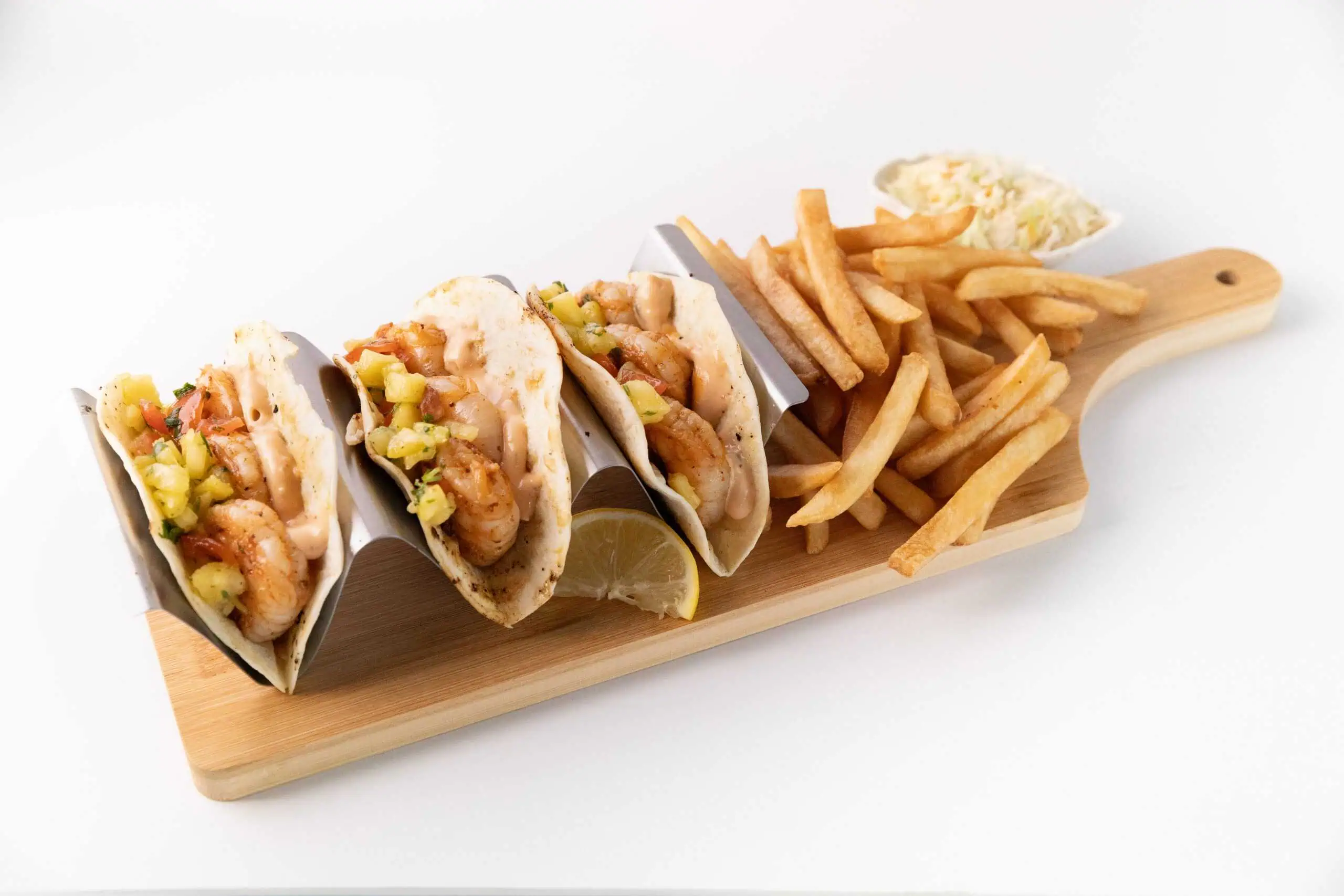 A photo of the shrimp tacos available at Oakville Fish & Chips – one of 30 restaurants to get a $10,000 grant from DoorDash Canada. (Photo: Courtesy of DoorDash Canada)