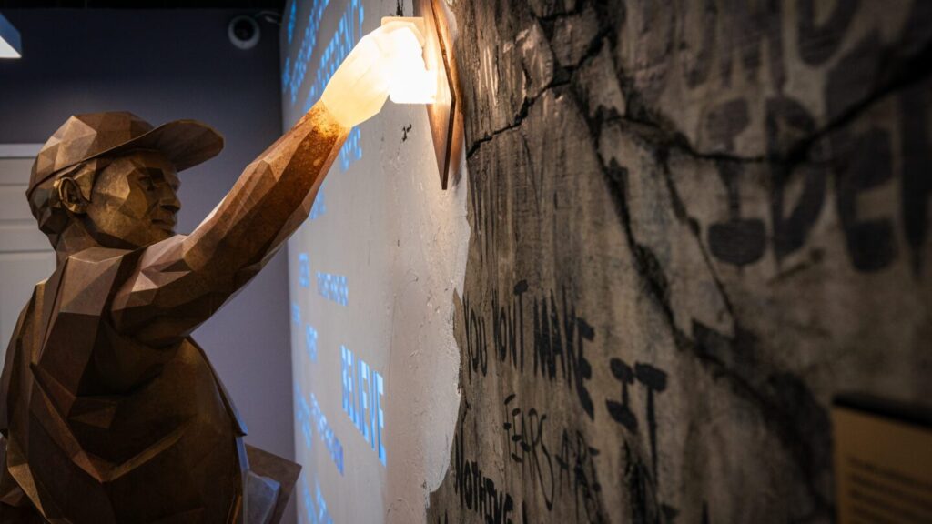 RICE says the building is intentionally filled with words and images meant to inspire entrepreneurs to think in innovative and collaborative ways. (Matthew Pearson/WABE)