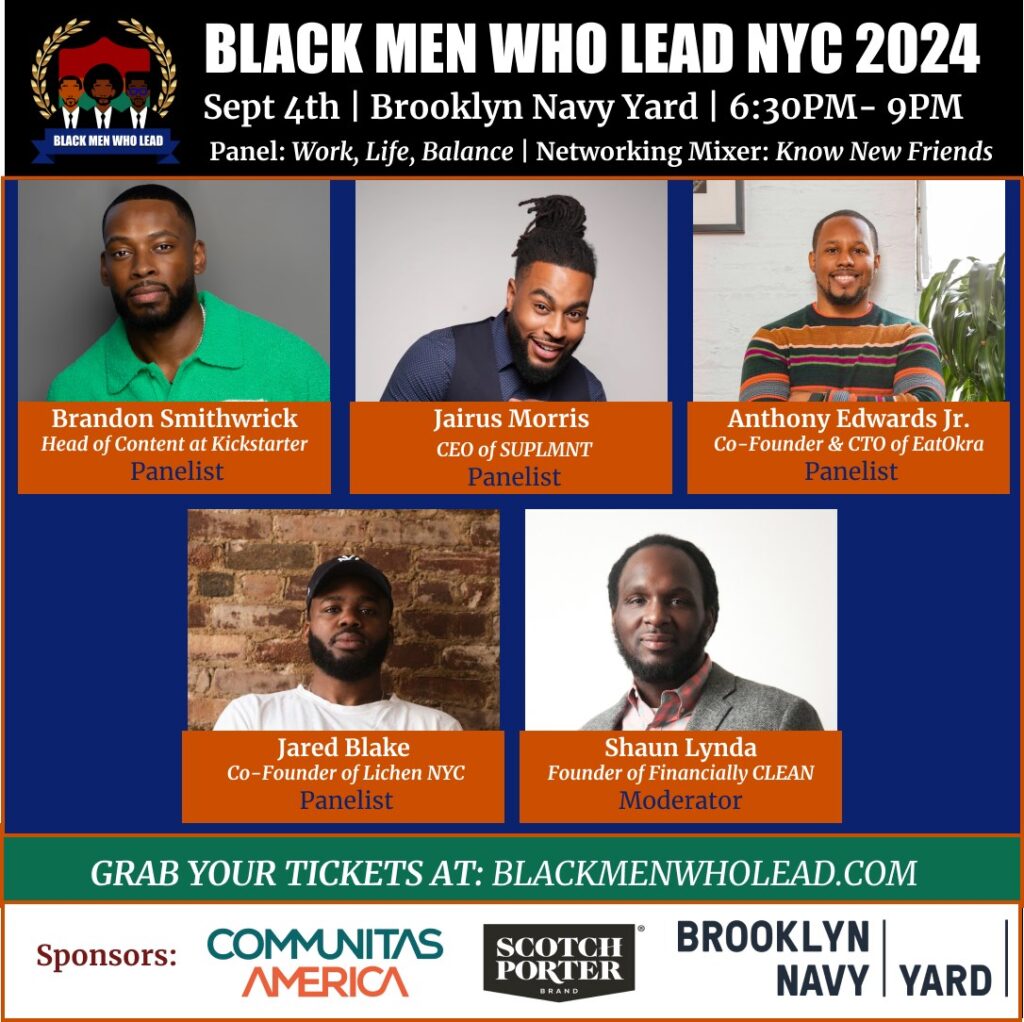 Aspiring Black business professionals and community leaders are invited to the upcoming Brooklyn-based Black Men Who Lead event on September 4, at the Brooklyn Navy Yard. Since 2017, Black Men Who Lead has highlighted dynamic male founders who have created amazing businesses and fostered positive changes within our communities.
