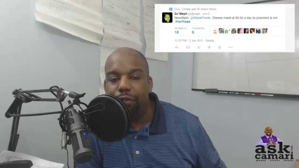 Camari Ellis is sharing his thoughts about a discussion he had about Whole Foods and Prison Labor in Stock Market Tigers Group on Facebook.