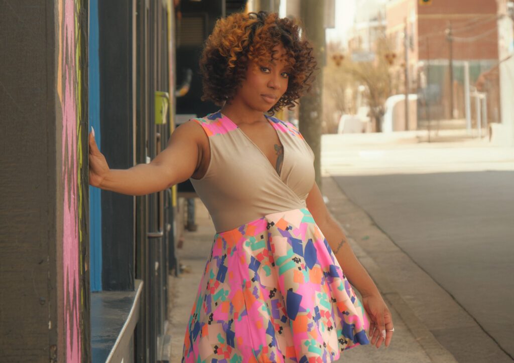“They didn’t really know what to think. My family, everybody was like ‘What? You not doing hair?’”Ashley Nesbit with bottles from a line of products she developed for her clients. 2020. (Photo courtesy of Ashley Nesbit)Nesbit explained that her role as a hairstylist had become part of her identity. Most of her non-familial connections in Charlotte were the result of her business—a client here, a friend of a client there—, and many people, herself included, had a hard time separating her from her former career.Shortly after closing her business, Nesbit said she started to lose herself.“I was used to being behind the chair [all day], so now, I didn’t have that, and it was really a real identity crisis. It’s like I was so tied to my career that I didn’t know who I was without me doing hair,” she told QCity Metro. “But I had to put myself and my family, my mental health first.”The void pushed her to explore her passions beyond hairstyling, leading her to venture out more. She spent time exploring things she enjoyed but hadn’t had the time for, including eating at new restaurants or finding things to do around town. She began sharing videos of her explorations on social media.